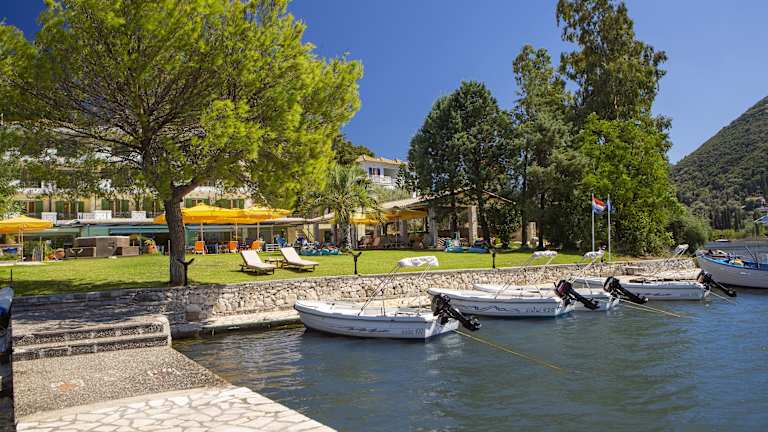 Das Cleopatra Beach Hotel befindet sich in der Ortschaft Geni an der Bucht Vlychos. Es liegt inmitten einer wunderschönen Naturkulisse und bietet einen beeindruckenden Panoramablick auf das Ionische Meer. Das lebhafte Dorf Nydri ist nur 4 km entfernt und die Stadt Lefkada erreichen Sie nach 16 km. Der Flughafen Aktio ist etwa 43 km entfernt.