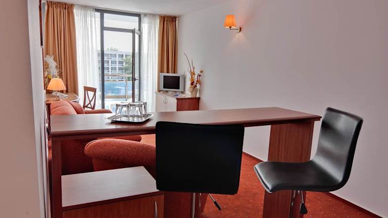 Die Zimmer bieten ein Wohnzimmer, ein Badezimmer und sind mit Klimaanlage, Balkon, Safe, Minibar, Schreibtisch, Telefon, TV und kostenfreiem Wifi ausgestattet. Die Badezimmer verfügen über Dusche und Badewanne sowie Haartrockner und Kosmetikartikel.