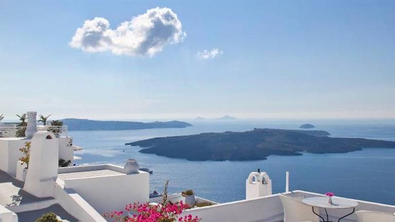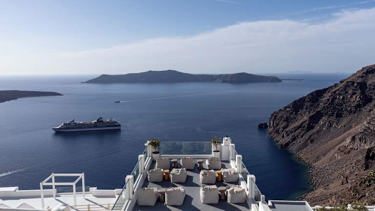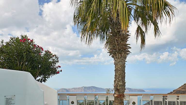 Entspannen Sie am Pool und genießen Sie die herrliche Aussicht auf die Caldera. Das Hotel bietet auch einen Wellnessbereich mit Whirlpool und Massagen. Aktive Gäste können die Umgebung bei Radtouren erkunden.