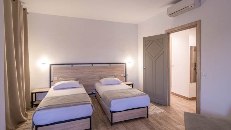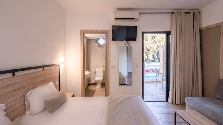 Das Hotel bietet insgesamt 186 Zimmer und 31 Suiten, die über zwei Etagen verteilt sind. Die Zimmer sind komfortabel eingerichtet und verfügen über Annehmlichkeiten wie Klimaanlage, Heizung, Safe, Minibar und WLAN. Ein Balkon oder eine Terrasse bietet einen herrlichen Blick auf die Umgebung. Familienzimmer sind ebenfalls verfügbar.