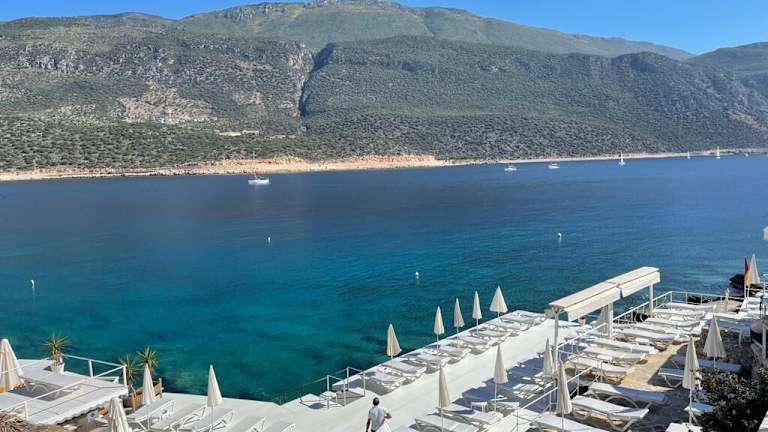 Das Hotel liegt unmittelbar am Meer in Kaş und bietet einen herrlichen Ausblick sowie einen privaten Strandbereich. Der Flughafen Dalaman ist etwa 165 km entfernt. Die Umgebung ist reich an kulturellen Sehenswürdigkeiten, wie den Lycian-Gräbern, den versunkenen Ruinen von Kekova und den Felsengräbern von Myra.