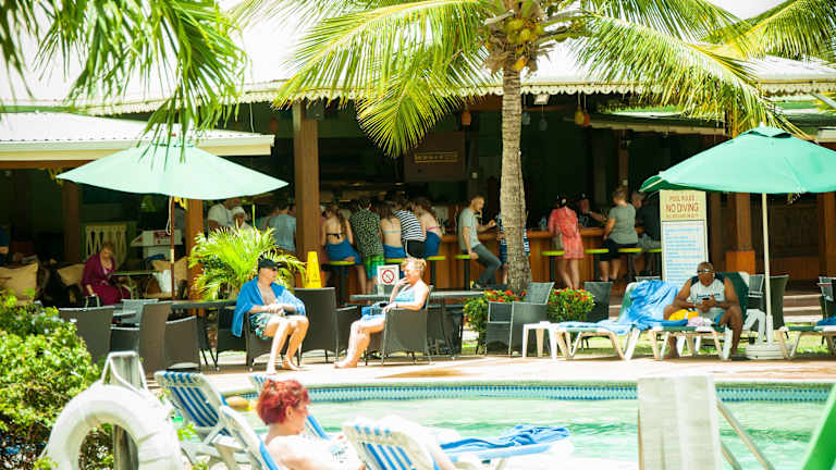 Im Ti Bananne Caribbean Bistro & Bar erwartet Sie eine Auswahl an Gerichten, darunter westindische und französische Küche. Das Restaurant bietet eine Aussicht auf den Pool, und beim Sonntagsbrunch wird Steelpan-Musik gespielt.