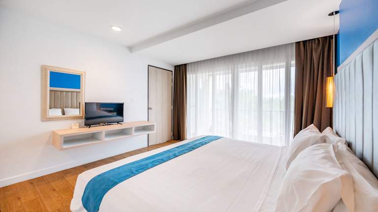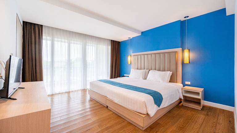 Die Zimmer sind mit einem Balkon, einer Klimaanlage, einem Flachbild-TV und einem eigenen Badezimmer mit Dusche und kostenlosen Pflegeprodukten ausgestattet. Familien- und Nichtraucherzimmer sind ebenfalls verfügbar. Die Ausstattung der Zimmer umfasst zudem einen Safe, eine Minibar und eine Kochnische. WLAN ist in den Zimmern ohne Gebühr verfügbar.