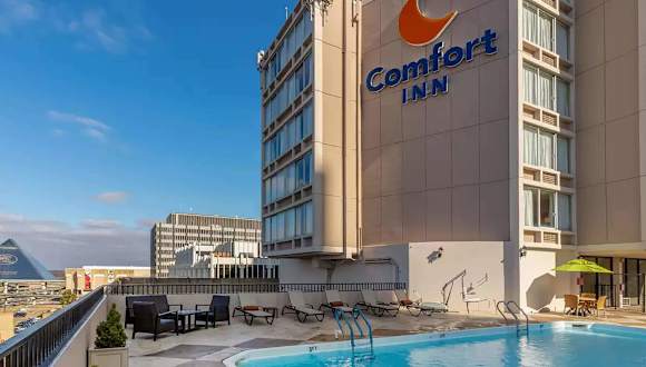 Das Comfort Inn Memphis Downtown bietet eine ideale Lage in der historischen Innenstadt von Memphis mit Blick auf den Mississippi River und den Mud Island River Park. Das Hotel ist gut angebunden und bietet eine Vielzahl von Annehmlichkeiten wie einen Außenpool auf dem Dach und ein Fitnesscenter. Das kostenlose warme Frühstück und der kostenfreie Highspeed-Internetzugang in allen Zimmern machen den Aufenthalt noch angenehmer.