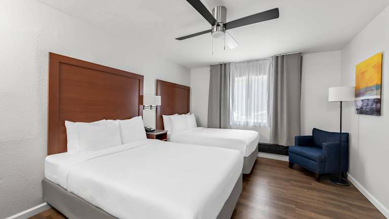 Die Zimmer sind mit einer Klimaanlage, individuell steuerbarer Heizung, einem Doppelbett, einem Queensize-Bett oder einem Kingsize-Bett ausgestattet. Zur Ausstattung gehören ein Safe, eine Minibar, ein Schreibtisch, Kühlschrank, Mikrowelle, Tee-/Kaffeemaschine und ein Bügelset. Das Badezimmer verfügt über Dusche und Badewanne sowie Kosmetikartikel und Handtücher. Die Zimmer bieten zudem ein TV-Gerät mit Satelliten-/Kabelempfang und WiFi (ohne Gebühr). Rollstuhlgerechte Zimmer sind ebenfalls verfügbar.
