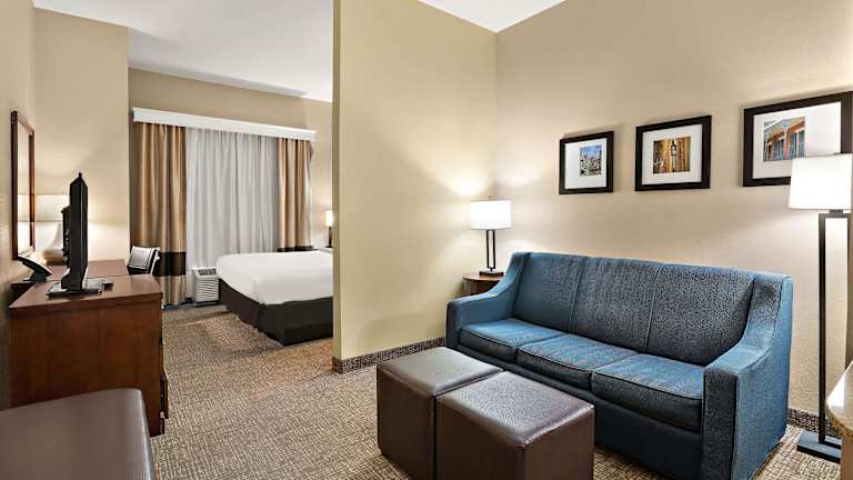 Die Unterkunft Comfort Inn New Orleans Airport South liegt in Saint Rose, 4,7 km von Rivertown entfernt. Die Umgebung bietet zahlreiche Attraktionen, darunter das Einkaufszentrum Esplanade Mall (8,6 km entfernt) sowie das Treasure Chest Casino und das Kongresszentrum Pontchartrain (jeweils 11 km entfernt). Historischer Stadtteil Uptown New Orleans befindet sich 21 km entfernt, während der Bahnhof Union Station 22 km weit weg ist. Der nächstgelegene Flughafen ist der Louis Armstrong Flughafen, nur 2 km von der Unterkunft entfernt.
