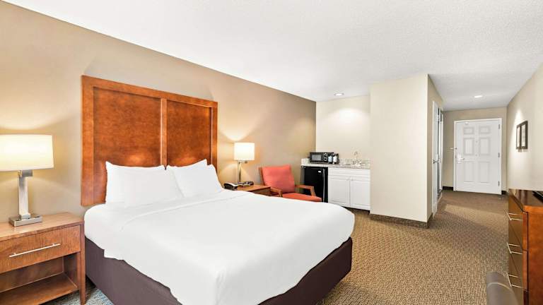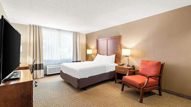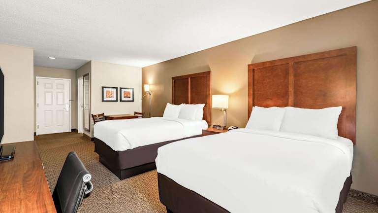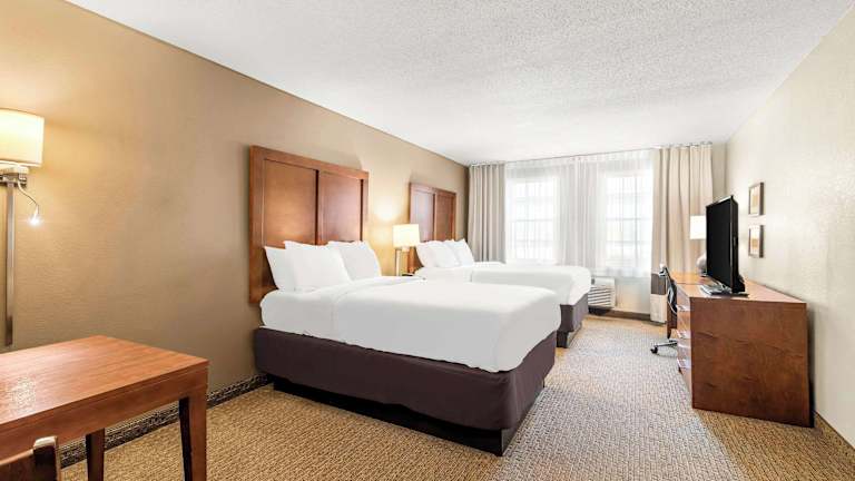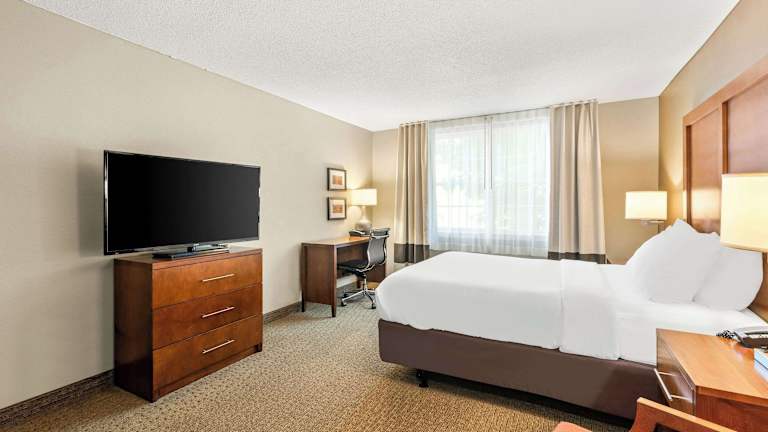 Das Comfort Inn & Suites Hotel bietet 59 Nichtraucherzimmer auf 3 Etagen. Die Zimmer sind geräumig und verfügen über Annehmlichkeiten wie Klimaanlage, Mikrowelle, Kaffeemaschine, LCD-Fernseher und WLAN. Einige Zimmer verfügen auch über eine Whirlpool-Badewanne. Zu den weiteren Einrichtungen des Hotels gehören ein Aufzug, eine Gartenanlage, ein beheizter Innen- und Außenpool sowie ein Fitnessraum.