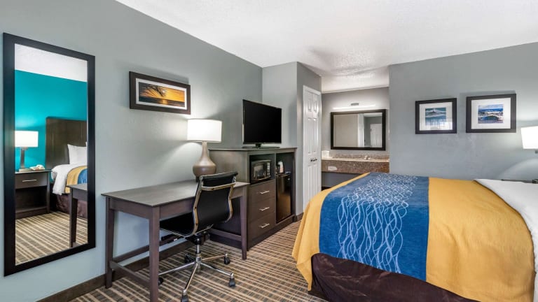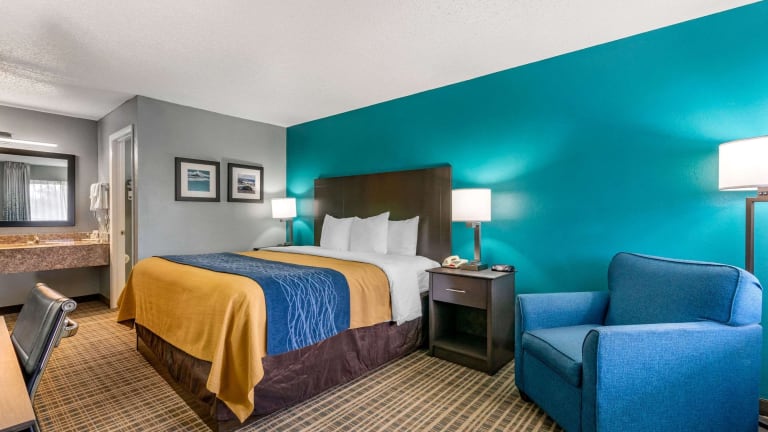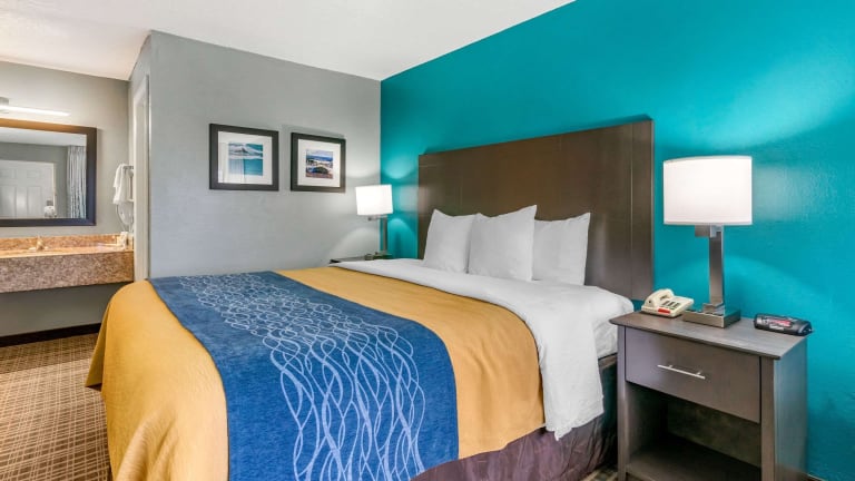 Das Comfort Inn Hotel bietet einen entspannten Aufenthalt in 74 heimeligen Zimmern. Die Unterkunft verfügt über Annehmlichkeiten wie einen Aussenpool, einen Innenpool und einen Whirlpool im Wellnessbereich. Eine 24-Stunden-Rezeption, ein Hotelsafe ohne Gebühr und ein Konferenzraum gehören ebenfalls zum Serviceangebot. Zudem ist die Unterkunft mit kostenlosem Internetzugang ausgestattet, und es stehen Parkiermöglichkeiten zur Verfügung.