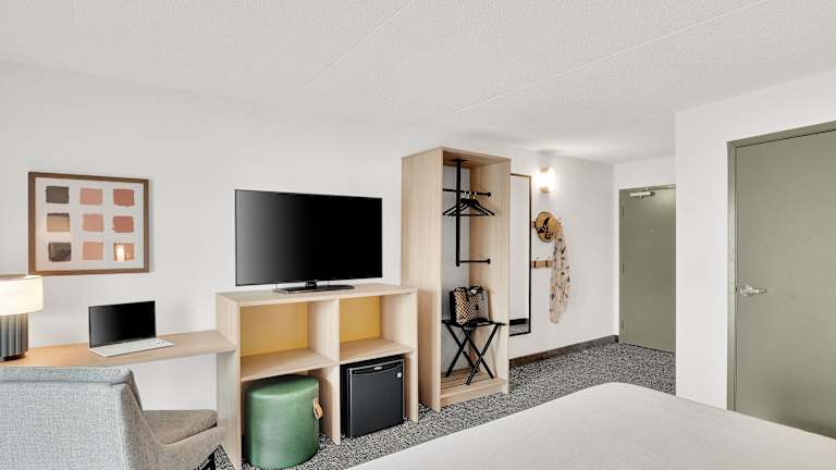 In den Zimmern stehen Annehmlichkeiten wie Klimaanlage, Heizung, ein Kingsizebett und ein Sofabett zur Verfügung. Zudem können die Gäste einen Kühlschrank, eine Mikrowelle, eine Tee-/Kaffeemaschine sowie ein Bügelset nutzen. Die Zimmer sind mit einem Flachbild-TV, kostenfreiem WiFi, einem Telefon und einem Safe ausgestattet. Die Badezimmer bieten eine Dusche und Badewanne sowie einen Haartrockner und passende Kosmetikartikel. Rollstuhlgerechte Zimmer mit barrierefreiem Badezimmer sind buchbar. Alle Zimmer sind Nichtraucherzimmer.