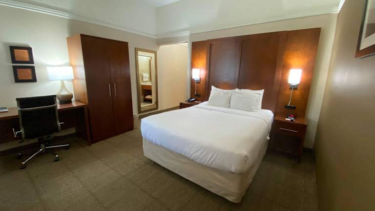 Die Zimmer sind mit Klimaanlage, individuell regulierbarer Heizung und Teppichböden ausgestattet. Jedes Zimmer verfügt über ein Doppelbett, ein Sofabett, Safe, Kühlschrank, Mikrowelle, Tee-/Kaffeemaschine sowie ein Bügeleisen/-brett. Zudem stehen ein Telefon mit Direktwahl, ein Fernseher mit Satelliten-/Kabelempfang und kostenloses Wifi zur Verfügung. Die Badezimmer sind mit Dusche und Badewanne ausgestattet und bieten Haartrockner sowie Kosmetikartikel.