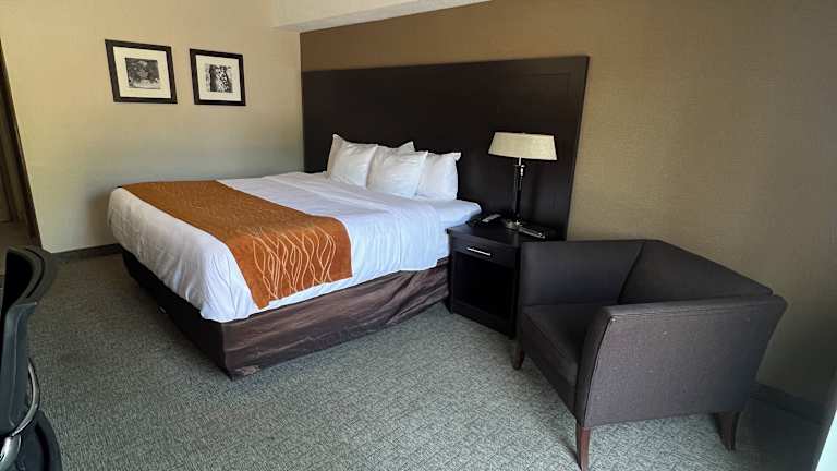 Die Zimmer im Hotel Comfort Inn sind klimatisiert und verfügen über eine Kaffeemaschine, Haartrockner sowie Bügeleisen und -brett. Einige Zimmer sind zusätzlich mit einer Mikrowelle und einem Kühlschrank ausgestattet. Alle Zimmer bieten Wifi ohne Gebühren. Es stehen Nichtraucherzimmer und rollstuhlgerechte Zimmer mit barrierefreiem Badezimmer zur Verfügung.