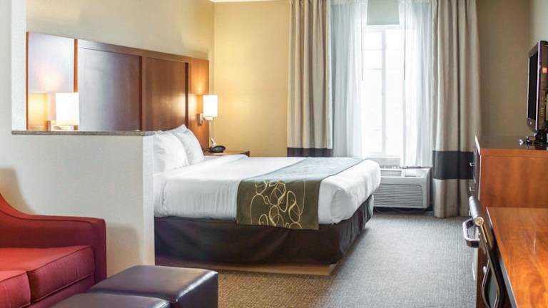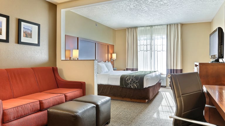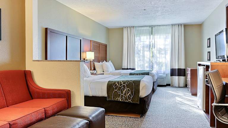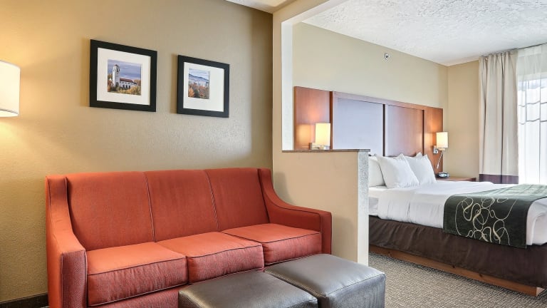 Das Comfort Suites Airport bietet 83 Zimmer und verfügt über einen Lift. Ein freundliches Personal an der Rezeption steht den Gästen bei Fragen zur Verfügung. Die Einrichtung des Hotels umfasst einen Safe und einen Getränkeautomaten. WLAN ist für die Gäste verfügbar. Das Hotel bietet behindertergerechte Annehmlichkeiten und rollstuhlgerechte Einrichtungen. Eine behagliche Atmosphäre entsteht durch einen Kamin. Einkaufsmöglichkeiten sind in der Nähe vorhanden. Ein Garten lädt zur Entspannung und Erholung im Freien ein. Zu den weiteren Einrichtungen gehören ein TV-Raum. Bei Anreise mit dem Auto steht eine Garage sowie ein Parkplatz (beide gegen Gebühr) zur Verfügung.