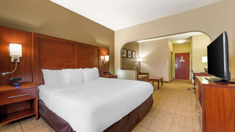 Das Comfort Suites Hotel in Castle Rock hat 66 Zimmer und bietet eine behagliche Atmosphäre, unterstützt durch einen Kamin. Zu den Einrichtungen gehören unter anderem ein Aufzug, ein TV-Raum und ein Minimarkt. Gäste haben Zugang zum Internet über kostenfreies WLAN in den Zimmern, während die Internetnutzung in den öffentlichen Bereichen gegen Gebühr erfolgt. Das freundliche Personal an der Rezeption ist bei allen Fragen behilflich. Haustiere sind gegen eine geringe Gebühr pro Nacht erlaubt.