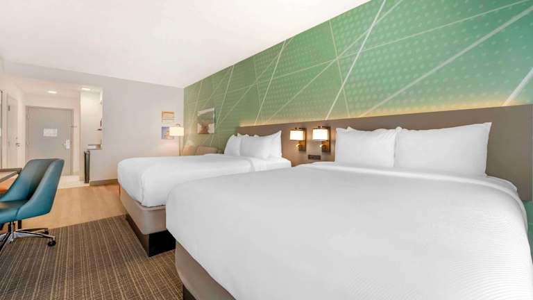 Die Zimmer sind mit einem Doppelbett und einem Sofabett ausgestattet. Weitere Annehmlichkeiten sind ein Kühlschrank, eine Mikrowelle, eine Tee-/Kaffeemaschine, ein Telefon und kostenfreies WiFi. Die Badezimmer verfügen über eine Dusche, eine Badewanne und eine Whirlwanne. Für zusätzlichen Komfort sorgt die Klimaanlage und die Heizung. Das Hotel bietet rollstuhlgerechte Zimmer mit barrierefreien Badezimmern an. Familien- und Nichtraucherzimmer sind ebenfalls verfügbar.