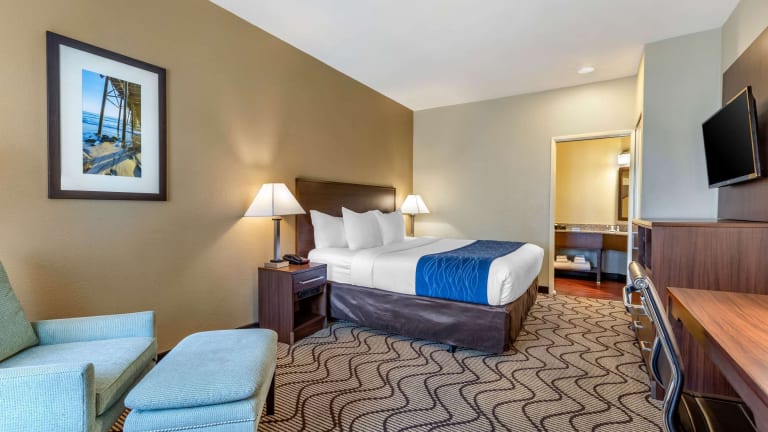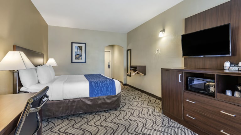 Das Hotel Comfort Suites John Wayne Airport begrüsst die Gäste mit einem freundlichen Personal, das gerne bei allen Fragen behilflich ist. Es bietet eine gemütliche und entspannte Atmosphäre mit verschiedenen Einrichtungen wie einem Garten für Erholung im Freien, einem TV-Raum, Einkaufsmöglichkeiten im Minimarkt und modernen Annehmlichkeiten.