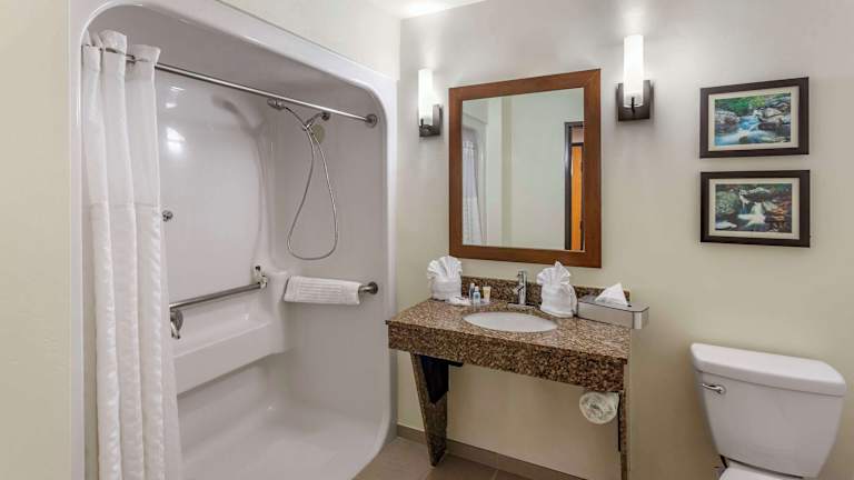 Das Comfort Suites Ogden bietet 142 Zimmer und eine Vielzahl von Dienstleistungen. Die Unterkunft umfasst rollstuhlgerechte Einrichtungen, einen Safe, einen Geldautomaten sowie ein Restaurant und eine Bar. Zu den weiteren Einrichtungen zählen ein Souvenirladen, ein Kiosk, eine Wäscheeinrichtung und eine Rezeption, die rund um die Uhr besetzt ist. Das Hotel hat sowohl einen Indoor- als auch einen Outdoor-Pool und bietet gratis Highspeed-Internetzugang.