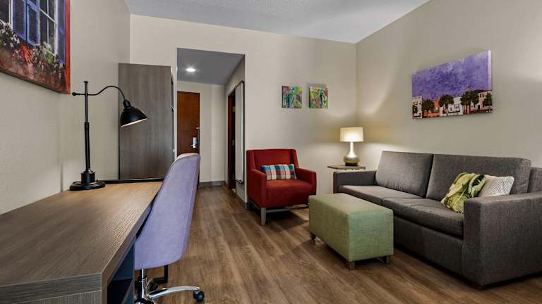 Die geräumigen Suiten im Comfort Suites Charleston West Ashley bieten eine moderne und komfortable Ausstattung. Jedes Zimmer verfügt über einen Flachbild-Kabel-TV, einen Safe und eine Kaffeemaschine. Eine Mikrowelle und ein Kühlschrank sind ebenfalls vorhanden, um Ihnen eine bequeme Selbstversorgung zu ermöglichen. Die Zimmer sind mit einem separaten Sitzbereich und einem Schreibtisch ausgestattet, um Ihnen zusätzlichen Komfort zu bieten.