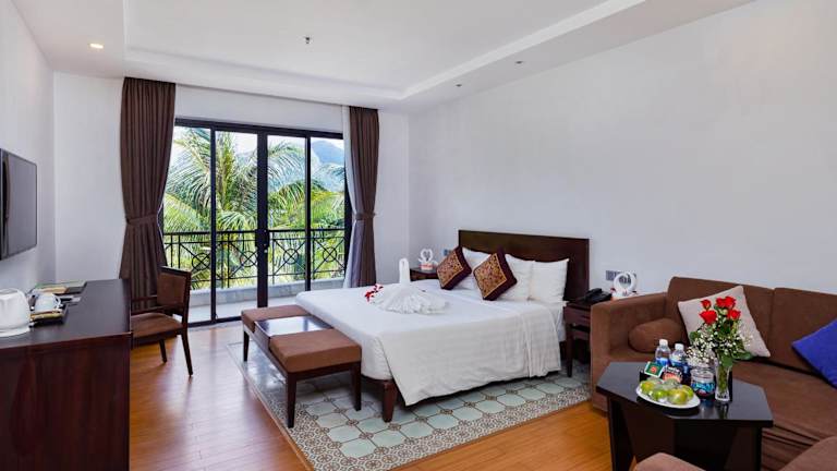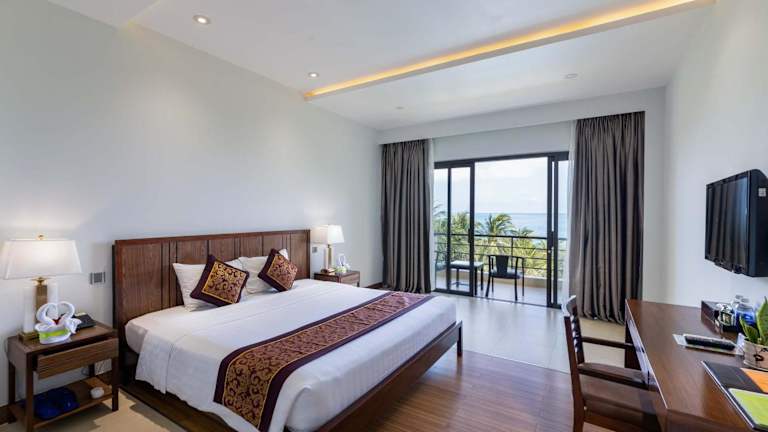 Die klimatisierten Zimmer im Con Dao Resort sind mit einem Minibar, einem Wasserkocher und einem eigenen Bad ausgestattet. In den Zimmern sind zudem ein Haartrockner und Hausschuhe vorhanden.