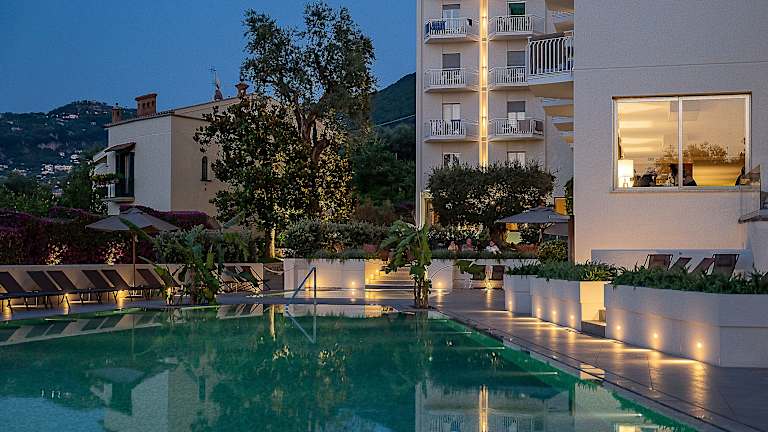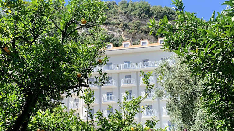 Das Hotel liegt erhöht und zentral in Sorrent, umgeben von mediterraner Vegetation. Das historische Zentrum und die Stadtmauern sind in Sichtweite. Restaurants, Bars und Geschäfte befinden sich ca. 500 Meter entfernt. Der Bahnhof und eine Busstation sind ebenfalls in der Nähe. Der felsige Strand ist in ca. 500 Metern erreichbar. Der Flughafen Capodichino in Neapel ist ungefähr 50 Kilometer entfernt.