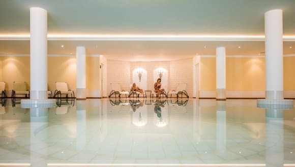 Schwimmbad 15m mit Liegewiese, Finnische Sauna, Infrarotsauna, Dolomitensauna, Lärchen-Textilsauna, Dampfbad - Nutzung kostenlos. Neuer Panorama TechnoGym-Fitnessraum. Private Whrilwannen gegen Bezahlung, Spielraum für Erwachsene mit Darts, Billard, Tischfußball und 10m Luftgewehrschießstand. Kinderspielraum mit Billard, Videogames, Tischfußball, im Sommer Spielplatz im Freien.