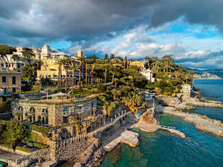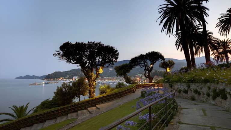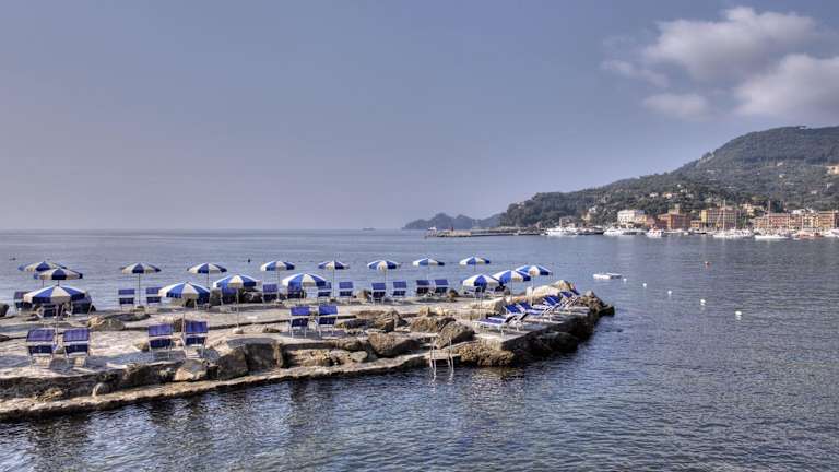 Das Hotel Continental thront auf dem malerischen Punta Pagana, direkt am Meer und bietet einen einzigartigen Panoramablick über die Bucht von Santa Margherita Ligure und den Monte di Portofino. Es liegt eingebettet in einen liebevoll angelegten Park mit jahrhundertealten Pinien und Steineichen und verfügt über einen privaten Kiesstrand mit kristallklarem Wasser Verkehrsanbindung: Nur 300 m trennen Sie vom Bahnhof Santa Margherita Ligure–Portofino, von dem aus regelmäßige Züge nach Genua und La Spezia verkehren. Der Flughafen Genua (Cristoforo Colombo) ist ca. 30 km entfernt (etwa 45 Minuten Fahrt) Ortskern & Promenade: Die charmante Altstadt von Santa Margherita Ligure mit ihrem lebhaften Hafen, zahlreichen Cafés, Bars und Boutiquen erreichen Sie in wenigen Gehminuten. Sehenswürdigkeiten vor der Haustür: Villa Durazzo: Renaissance-Villa mit weitläufigem Garten und Panoramablick. Kirche San Giacomo di Corte: Historisches Gotteshaus hoch über dem Ort. Cervara Abbey: Malerische Abtei an der Küstenstraße nach Portofino. Wanderwege: Die Trails des Naturparks Portofino beginnen direkt beim Hotel Tagesausflüge: Portofino: Die „Perle des Tigullio“ ist nur ca. 5 km entfernt und per Bus oder Boot in wenigen Minuten erreichbar. Cinque Terre: Mit dem Zug ab Bahnhof Santa Margherita Ligure in etwa 1 Stunde erreichbar. Genua: Historische Hafenstadt in rund 30 Minuten per Zug oder Auto.