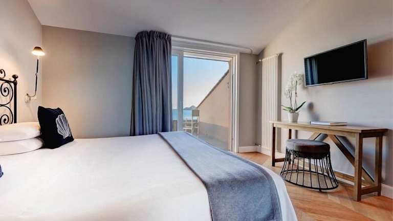 Das Hotel befindet sich in einem prächtigen Jugendstilgebäude direkt am Meer und erstreckt sich über vier Etagen mit insgesamt 78 geschmackvoll eingerichteten Zimmern, darunter komfortable Suiten. Zur Ausstattung gehören eine Rezeption mit 24-Stunden-Service, Aufzüge und kostenfreies WLAN im gesamten Gebäude. Kulinarisch verwöhnt Sie ein À-la-carte-Restaurant mit Meerblick, das saisonal von Mai bis September geöffnet ist, sowie ein weiteres À-la-carte-Strandrestaurant. Für gesellige Stunden stehen Ihnen eine Bar und ein TV-Raum zur Verfügung. Die liebevoll angelegte Außenanlage mit Garten und Sonnenterrasse lädt zum Verweilen ein; Sonnenliegen und Schirme sind am nahegelegenen Strand gegen Gebühr verfügbar. Parkmöglichkeiten gibt es direkt am Haus (ca. 20 € pro Tag) sowie in der hoteleigenen Tiefgarage (ca. 25 € pro Tag). Alle gängigen Kreditkarten werden akzeptiert; zudem fällt eine Touristensteuer von 3 € pro Person/Nacht (ab 15 Jahren) an. Haustiere (max. 1) sind gegen eine Gebühr von ca. 15 € pro Tag willkommen (nicht in öffentlichen Bereichen, Reservierung erforderlich).