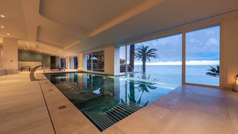 Spa & Wellness – Le Tamerici Spa Im Herzen des italienischen Gartens gelegen und über 400 m² groß, bietet Le Tamerici Spa drei Behandlungsräume für Massagen, Körperrituale und Gesichtsanwendungen. Der ganzjährig nutzbare Panoramapool verbindet Innen- und Außenbereich und ist mit Wasserspielen sowie Hydromassagen ausgestattet. Im Nassbereich erwarten Sie finnische Sauna, Dampfbad, Ice Fall, Cold Breeze und Cold Rain, während mehrere Relax‐Zonen zum Ausruhen einladen. Fitnessbereich Helle Panoramagym mit Blick aufs Meer und top-moderne Technogym-Geräte: Laufband (Runner), Ergometer (Cyclette), Multifunktions-Stationen (Wave, Recline, Synchro) für Ausdauer und Ganzkörper-Workouts. Privater Strand & Wassersport Zugang zur hoteleigenen Bucht mit natürlicher „Pool“-Lagune; Aktivitäten wie Schnorcheln, Tauchen, Kanufahren und Windsurfen (Ausrüstung auf Anfrage). Fahrradverleih & Touren Vor Ort stehen Leihfahrräder bereit, dazu geführte Radtouren entlang der Küste und durch das weitläufige Parkgelände. Outdoor-Aktivitäten in der Umgebung In wenigen Minuten erreichen Sie Golfplätze, Tennisanlagen und Reitställe; Wanderwege im Naturpark Portofino beginnen direkt vor der Hoteltür. Unterhaltung & Spiele Tischtennis, Minigolf und gelegentliche Live-Musik-Events sorgen für Abwechslung, außerdem werden geführte Spaziergänge und kulturelle Ausflüge angeboten