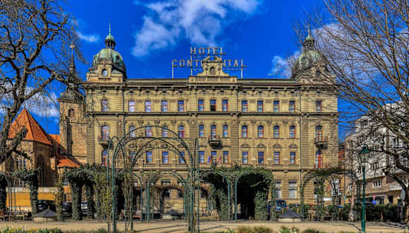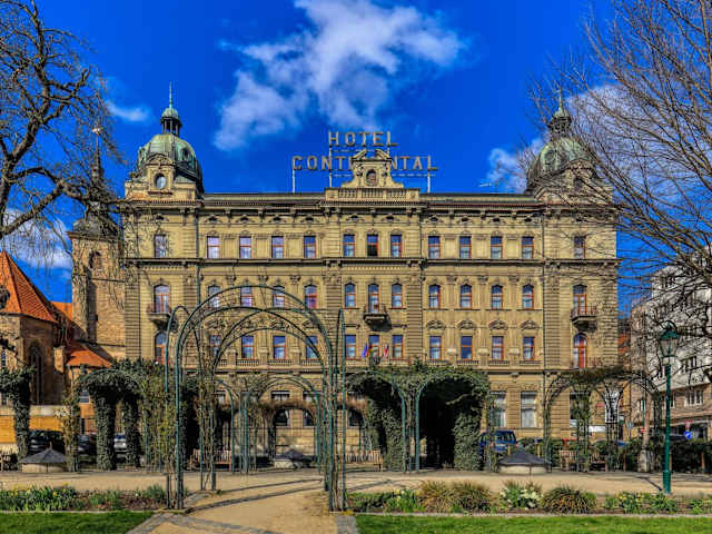 Das Hotel Continental stammt aus dem Jahr 1895 und ist in einem historischen Gebäude untergebracht. Es bietet neu renovierte Zimmer, Suiten sowie Themenzimmer, die nach berühmten Persönlichkeiten aus der Geschichte Pilsens benannt sind.