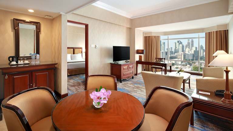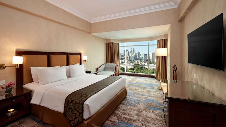 Die Zimmer sind mit einer Klimaanlage ausgestattet und verfügen über ein Doppelbett, ein Queensize-Bett oder ein Kingsize-Bett. Ein Safe, eine Minibar und ein Schreibbereich sind ebenfalls verfügbar, ebenso wie eine Tee-/Kaffeemaschine und ein Bügelset. Die Zimmer sind mit einem TV-Gerät mit Satelliten-/Kabelempfang ausgestattet und WLAN ist auch vorhanden. Die Bäder sind mit Dusche und Badewanne ausgestattet und verfügen über Haartrockner und Kosmetikartikel. Es sind auch rollstuhlgerechte Zimmer buchbar.