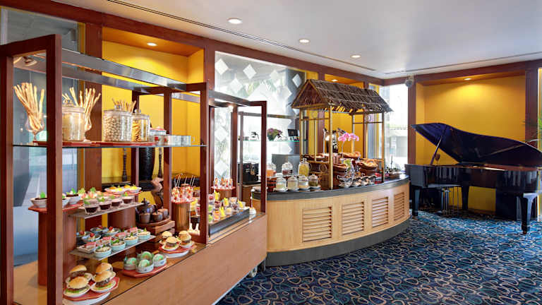 Das Hotel bietet mehrere gastronomische Einrichtungen, darunter ein Nichtraucherrestaurant mit Klimaanlage, ein Café und eine Bar. Im Speiseraum werden täglich ein nahrhaftes Frühstück sowie Buffets mit westlichen und indonesischen Gerichte serviert. Zimmerservice steht ebenfalls zur Verfügung.