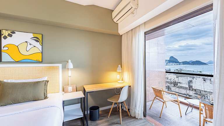 Das Hotel liegt etwa einen Häuserblock vom berühmten Sandstrand Copacabana entfernt, in der Umgebung finden sich Supermärkte und Geschäfte. Der internationale Flughafen ist ca. 40 Minuten, der Flughafen Santos Dumont rund 20 Minuten entfernt. Entfernungen: Flughafen ca. 12 km, Strand ca. 100 m, Stadtzentrum ca. 12 km, Bahnhof ca. 13 km.