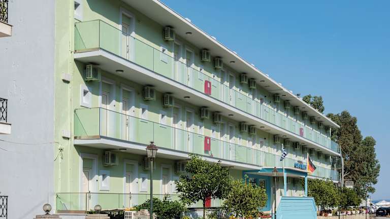 Das Hotel Corfu Maris liegt direkt am Strand von Benitses, nur 100 m vom Zentrum entfernt. In der Umgebung finden sich verschiedene Restaurants, Café-Bars sowie ein Supermarkt. Der internationale Flughafen Korfu und die Hauptstadt der Insel befinden sich in einer Entfernung von 12 km.