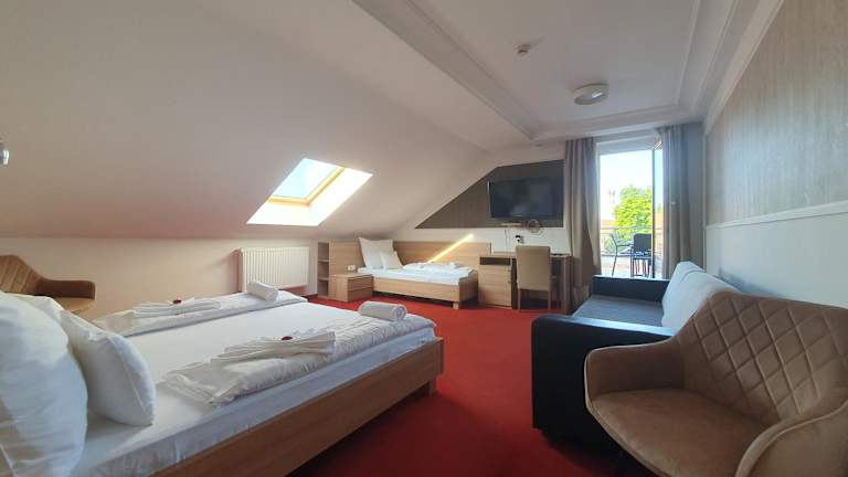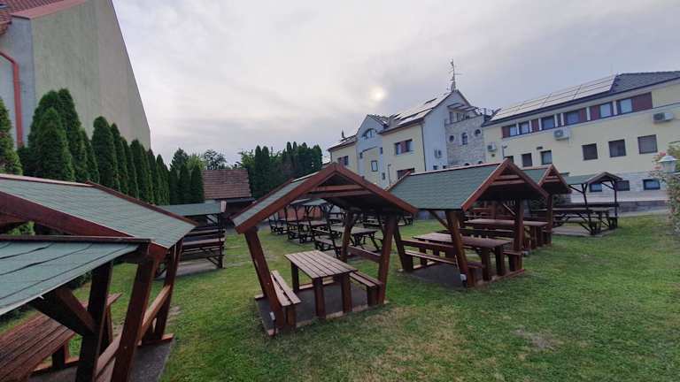 Das Corvina Hotel hat geschmackvoll eingerichtete Zimmer und bietet eine heimelige Atmosphäre. Für Familienfeiern und Geschäftsmeetings stehen Konferenzräume zur Verfügung, die vom Hotelpersonal organisiert werden. Im gemütlichen Biergarten findet an Wochenenden Livemusik statt, um die Gäste zu unterhalten.