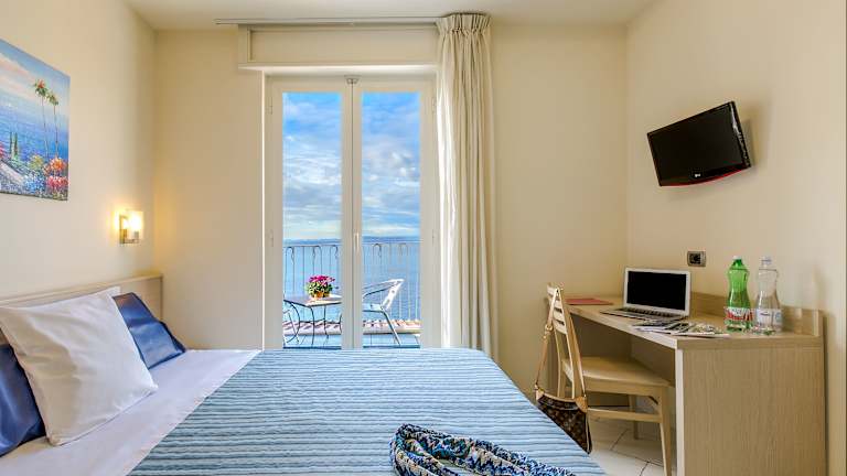Die Zimmer sind mit Klimaanlage und Heizung ausgestattet und bieten Balkone oder Terrassen mit Meerblick. Jedes Zimmer verfügt über ein Doppelbett, Queensize-Bett oder Kingsize-Bett sowie ein Badezimmer mit Dusche, Badewanne und Bidet. Zusätzliche Annehmlichkeiten sind ein Safe, ein Schreibtisch, ein Fernseher mit Satelliten-/Kabelempfang, ein Radio und kostenfreies WLAN. Familien- und Nichtraucherzimmer sind verfügbar.