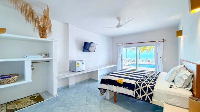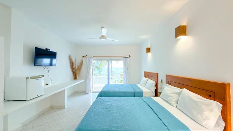 Die Zimmer im Hotel Costa Linda sind mit Klimaanlage, einem Schreibtisch, einer Terrasse mit Meerblick sowie einem eigenen Badezimmer ausgestattet. Zusätzlich verfügen sie über einen Flachbild-TV, Kühlschrank, Bettwäsche und Handtücher.