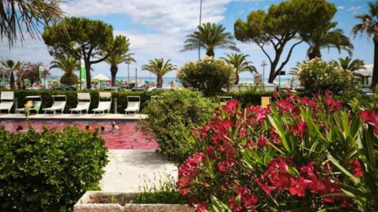 Das Hotel Costa Verde liegt in Tortoreto Lido und bietet Ihnen eine ideale Lage direkt am Strand. Genießen Sie den atemberaubenden Meerblick und entspannen Sie sich am eigenen Strand des Hotels. Die Umgebung lädt zu Spaziergängen entlang der Küste und zu Ausflügen in die nahe gelegenen Orte ein. Der Bahnhof Tortoreto liegt nur 1,5 km entfernt und die Autobahn A14 erreichen Sie nach 8 km.