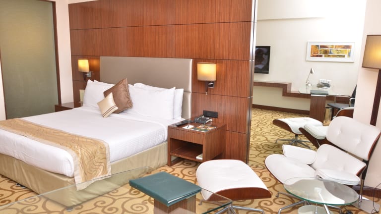 In den Zimmern sorgt eine Klimaanlage für ein angenehmes Raumklima. Zur Ausstattung gehören ein Safe, eine Minibar, ein Schreibtisch, ein Minikühlschrank sowie eine Tee-/Kaffeemaschine. Die Gäste finden zudem Hausschuhe in ihrer Unterkunft. Die Badezimmer sind mit einer Dusche und einer Badewanne ausgestattet und verfügen über Haartrockner und Bademäntel. Das Hotel bietet Familien- und Nichtraucherzimmer sowie einige rollstuhlgerechte Angebote.