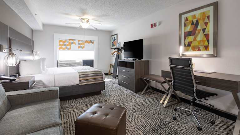 Die Unterkunft bietet eine Übernachtung inklusive einem amerikanischen Frühstücksbuffet. Das Frühstück verleiht den Gästen einen energiereichen Start in den Tag. Eine Snackbar steht für zwischendurch zur Verfügung. Es gibt zudem eine Vielzahl von Restaurants in der Nähe für die Mittag- und Abendverpflegung. Snacks und Getränke sind im Minimarkt vor Ort erhältlich.