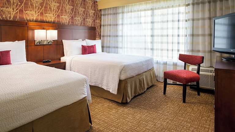 Die Zimmer im Courtyard Anaheim Buena Park Hotel sind komfortabel und bieten eine Vielzahl von Annehmlichkeiten. Jedes Zimmer verfügt über ein Doppelbett oder ein Schlafsofa, eine Klimaanlage und Heizung. Zur Ausstattung gehören auch ein Safe, eine Minibar, eine Mikrowelle, eine Kaffeemaschine und ein Schreibtisch. Ein Flachbildfernseher mit Kabelempfang und Pay-per-View-Option ist ebenfalls vorhanden. Das Badezimmer verfügt über eine Dusche oder eine Badewanne, einen Haartrockner und Bademäntel.