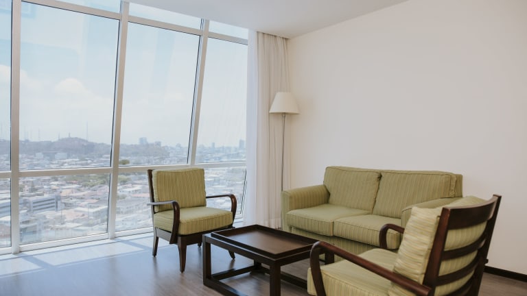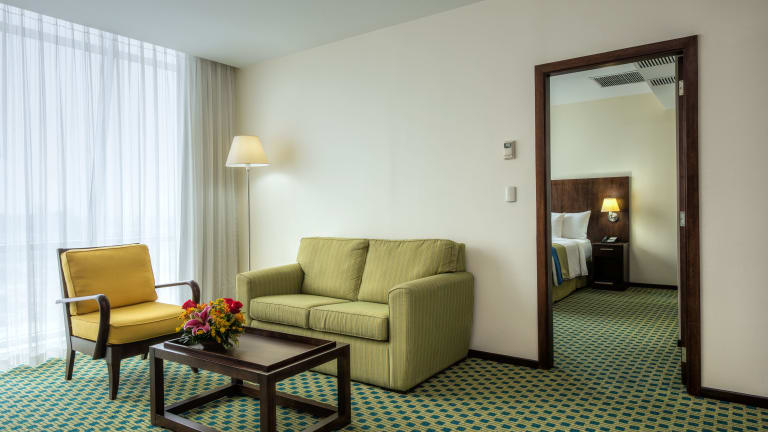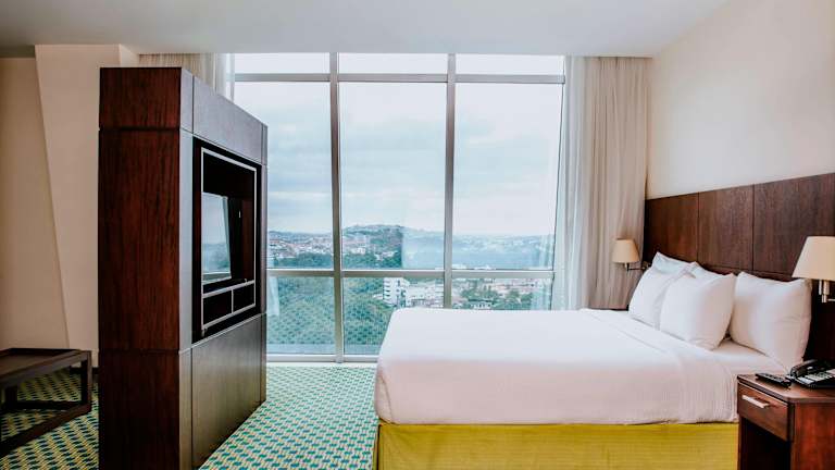 Die Zimmer im Courtyard by Marriott Guayaquil sind modern eingerichtet und verfügen über Teppichboden, Holz Möbel, plasma Fernseher sowie gemütliche Sitzbereiche. Sie bieten eine angenehme Bequemlichkeit für die Gäste und laden zum Verweilen ein.