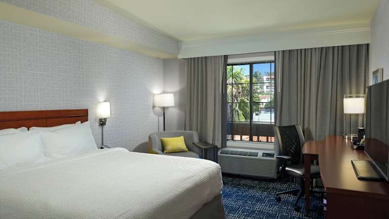 Das Hotel Courtyard by Marriott San Diego Old Town bietet 176 Zimmer mit modernen Annehmlichkeiten. Es verfügt über einen Aufzug, ein freundliches Personal, das bei Fragen behilflich ist, und diverse Einrichtungen wie eine Gepäckaufbewahrung, einen Safe, einen Geldautomaten und einen Getränkeautomaten. Für entspannende Stunden steht ein Garten zur Verfügung, ebenso wie ein TV-Raum und ein Spielzimmer. Das Hotel bietet zudem einen 24h-Sicherheitsdienst, Kinderbetreuung, einen Zimmerservice und einen Wäscheservice.