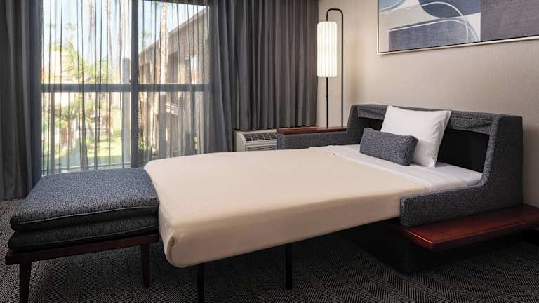 In den Zimmern finden Gäste eine Klimaanlage sowie eine Heizung vor. Die Zimmer sind mit einem Kingsizebett, einem Sofabett, einem Safe, einer Minibar, einem Kühlschrank und einer Mikrowelle ausgestattet. Ein TV-Gerät mit Kabelanschluss, Internetzugang und ein Haartrockner zählen zur Ausstattung. Zudem stehen den Gästen Balkon oder Terrasse mit Poolblick zur Verfügung. In den Badezimmern gibt es Duschen, Bademäntel und Kosmetikartikel. Auch rollstuhlgerechte Zimmer sind buchbar.