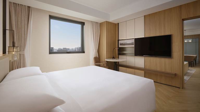 Die Zimmer sind mit Klimaanlage, einem Doppel-, Queensize- oder Kingsize-Bett, Safe, Minibar, Kühlschrank, Tee-/Kaffeemaschine und direkter Telefonwahl ausgestattet. Sie verfügen über Teppichböden, ein Marmorbad mit Dusche und Badewanne sowie einen Gute-Nacht-Service. Rollstuhlgerechte Zimmer stehen ebenfalls zur Verfügung.
