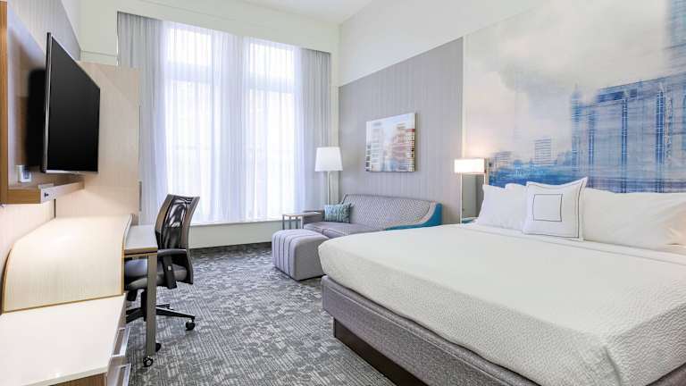 Die Zimmer im Courtyard by Marriott Pittsburgh Downtown sind komfortabel und gut ausgestattet. Jedes Zimmer verfügt über einen Schreibtisch, einen Haartrockner, einen kleinen Kühlschrank, eine Kaffeemaschine und hohe Decken. Ein Flachbild-Kabel-TV ist ebenfalls vorhanden.