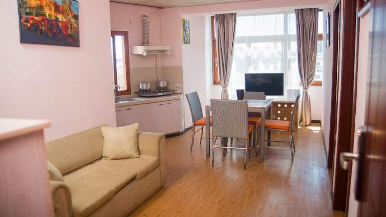 Die Unterkunft bietet klimatisierte Gästezimmer, die mit einem Flachbild-TV mit Satellitenkanälen ausgestattet sind. Jedes Zimmer verfügt über ein eigenes Badezimmer, Bettwäsche und Handtücher sowie einen Wasserkocher. Einige Zimmer sind zusätzlich mit einer Küche, einem Geschirrspüler und einer Minibar ausgestattet.