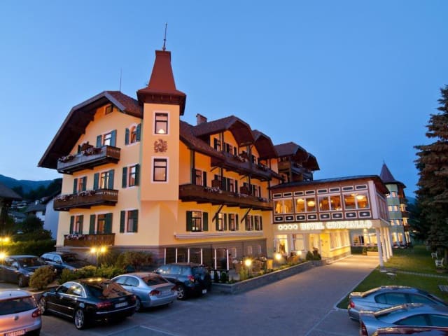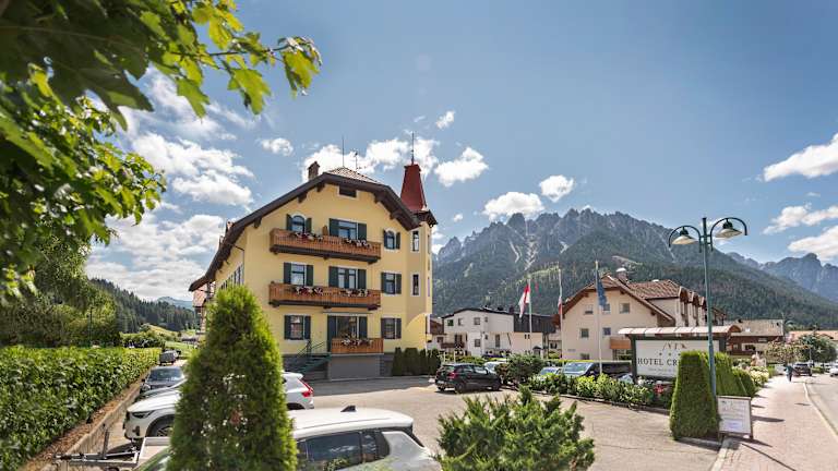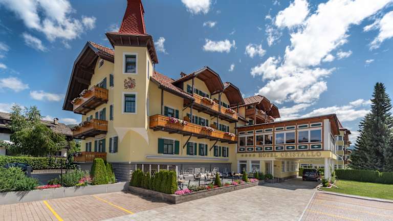 Die Dolomiten – majestätisch und auf der ganzen Welt bekannt! Mitten in dieser gigantischen Gesteinswelt befindet sich das Hotel Cristallo - ein paradiesischer Platz für alle Bergliebhaber. Durch seine warme gelbe Außenfassade bettet sich das Haus in das grüne Pustertal ein und verkörpert von Anfang an eine entspannte Atmosphäre. Südtiroler Gemütlichkeit zieht sich durch das Haus, denn die familiäre Freundlichkeit spürt man in allen Bereichen. Im Jahre 2006 wurde das Hotel komplett erneuert und schaffte es daraufhin mit Leichtigkeit in die Reihen der 4- Sterne Betrieben in Südtirol. 34 Zimmer und zwei Suiten, ein Panoramarestaurant und eine großzügige Wellnessabteilung bieten höchsten Komfort und Wohlfühlambiente.