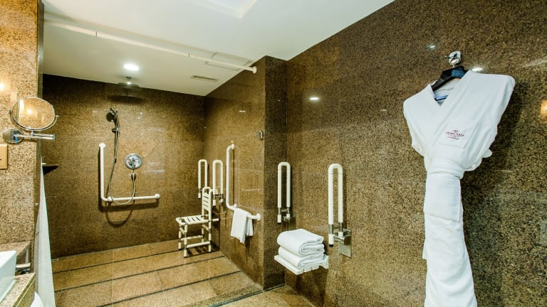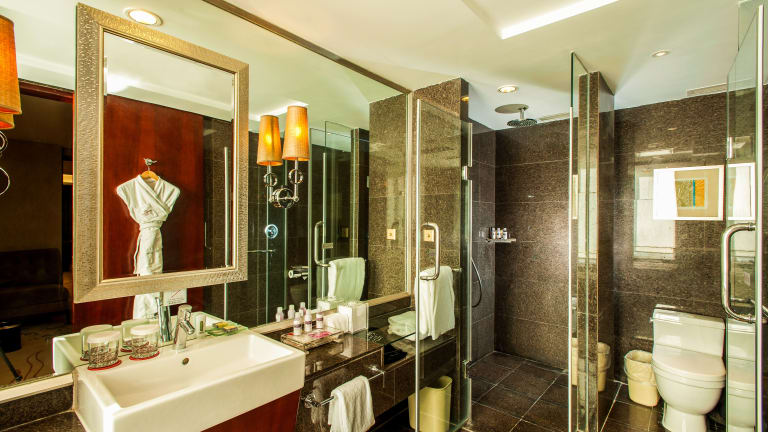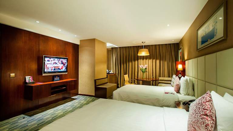Die geräumigen Zimmer bieten einen modernen Stil und traumhaften Stadtblick. Jedes Zimmer verfügt über Klimaanlage, eine Heizung und Teppichböden. Zur Ausstattung gehören ein Doppelbett oder Kingsize-Bett, ein Safe, eine Minibar, ein Kühlschrank sowie eine Tee- und Kaffeemaschine. Gäste können sich auf einen Haartrockner, eine Dusche, eine Badewanne sowie einen Fernseher und WLAN freuen. Rollstuhlgerechte Zimmer sind ebenfalls verfügbar.