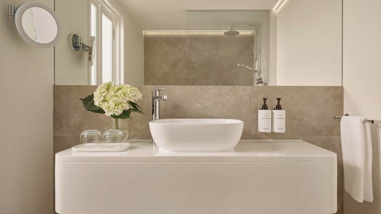Die Zimmer sind klimatisiert und bieten direkten Zugang zum Meerblick von Balkon oder Terrasse. Zur Ausstattung gehören Teppichböden, ein Doppel- oder Kingsize-Bett, ein Safe, eine Minibar, ein Kühlschrank sowie eine Tee- und Kaffeemaschine. Weiterhin sind ein TV-Gerät mit Satellitenempfang und kostenloses WiFi vorhanden. Die Badezimmer sind mit einer Dusche, Badewanne und Haartrockner ausgestattet. Rollstuhlgerechte Zimmer stehen ebenfalls zur Verfügung.