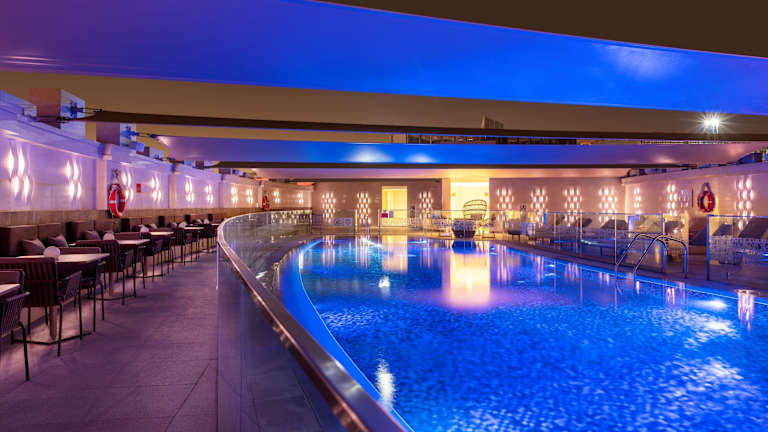 Das Hotel bietet ein umfangreiches Sport- und Freizeitangebot mit einem Aussenpool, Hallenbad und Kinderpool. Auf der Sonnenterrasse können Gästen Liegen und Sonnenschirme nutzen. Dazu gibt es ein Fitnessstudio, Yoga, einen Wellnessbereich mit Spa, Sauna, Dampfbad und gegen Gebühr eine Beautyfarm. Zu den weiteren Freizeitaktivitäten zählen ein Animationsprogramm, Live-Musik und eine Disco.