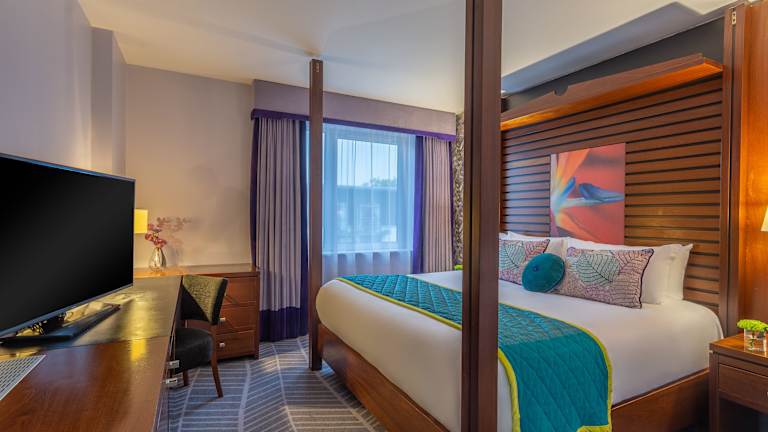 Die klimatisierten Zimmer sind individuell steuerbar und ausgestattet mit einem Doppelbett, Queensize- oder Kingsize-Bett. Ein Safe, ein Schreibtisch, ein Minikühlschrank sowie eine Tee-/Kaffeemaschine sind vorhanden. Zur technischen Ausstattung gehören ein Direktwahltelefon, TV mit Satelliten-/Kabelempfang und WiFi (ohne Gebühr). Im Badezimmer gibt es eine Dusche und eine Badewanne, sowie einen Haartrockner, Bademäntel und ein Telefon. Familienzimmer und rollstuhlgerechte Zimmer sind buchbar.